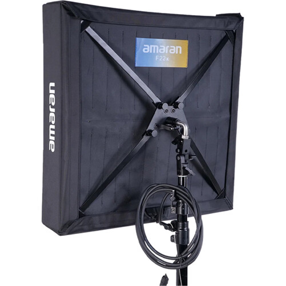 The F22x Bi-Color LED Flexible Mat from amaran is powerful, versatile, and flexible bi-color LED mat that measures 2x2'. It offers outstanding light output and color rendering suitable for a variety of users, from filmmakers to videographers, content creators, and still photographers. Providing 200W of power, this ultralight fixture's high-output bi-color chipset can be tuned from 2500K to 7500K, and features nine customizable lighting FX. It has stellar CRI and TLCI scores of 95+ and 98+, and stepless dimming from 0 to 100%. An included folding X-frame stretches the mat to a rigid panel that can be attached directly to a C-stand grip head using the straight Baby Pin adapter. The included foldable softbox has two strengths of diffusion, and a fabric grid that uses an integrated hook-and-loop fabric to instantly turn this flexible mat into an ultrathin soft light that will add beautifully controlled soft light to a scene. Frame, Diffusers & Grid