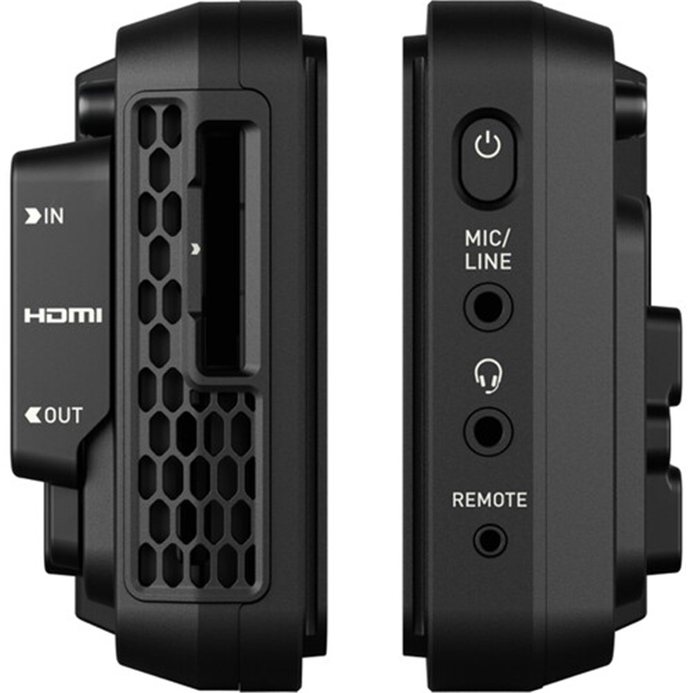 HDMI input supports 6K video up to 30 fps, up to 4K60, and up to 1080p120. Loop-through passes the incoming HDMI signal from the camera to another device, for example, an external monitor, wireless transmitter, or live streaming encoder. Via the HDMI input, you can record raw metadata such as white balance, exposure index, shutter speed/angle, Iris F stop, ISO, gamma, and gamut.