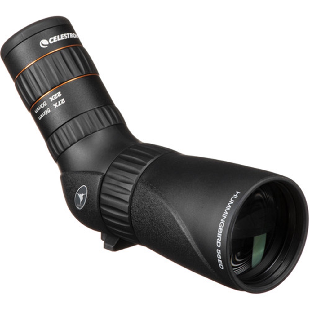 Enhance your trips, vacations, and outdoor adventures with the ultra-compact and ergonomic Hummingbird 9-27x56 ED Spotting Scope from Celestron. It can easily fit in the pocket of your coat and will not take much space in your backpack, travel bag, or glove compartment. This optic features all the characteristics of the high-performing spotting scopes and has exemplary extra-low dispersion (ED) glass to deliver crisp, vivid, and true-color images of breathtaking landscapes, vistas, or cityscapes. With the fully multi-coated optics, you will get excellent visual transparency of the optical glass, high resolution, and high-contrast of images. The 56mm objective will make the most of the available light and perform well in most lighting conditions, from early morning until night, and even allow you to use this spotting scope for stargazing. For good close-ups as well as distant observations, the scopes features 9-27x zoom magnification range and 9.8' minimum focusing distance