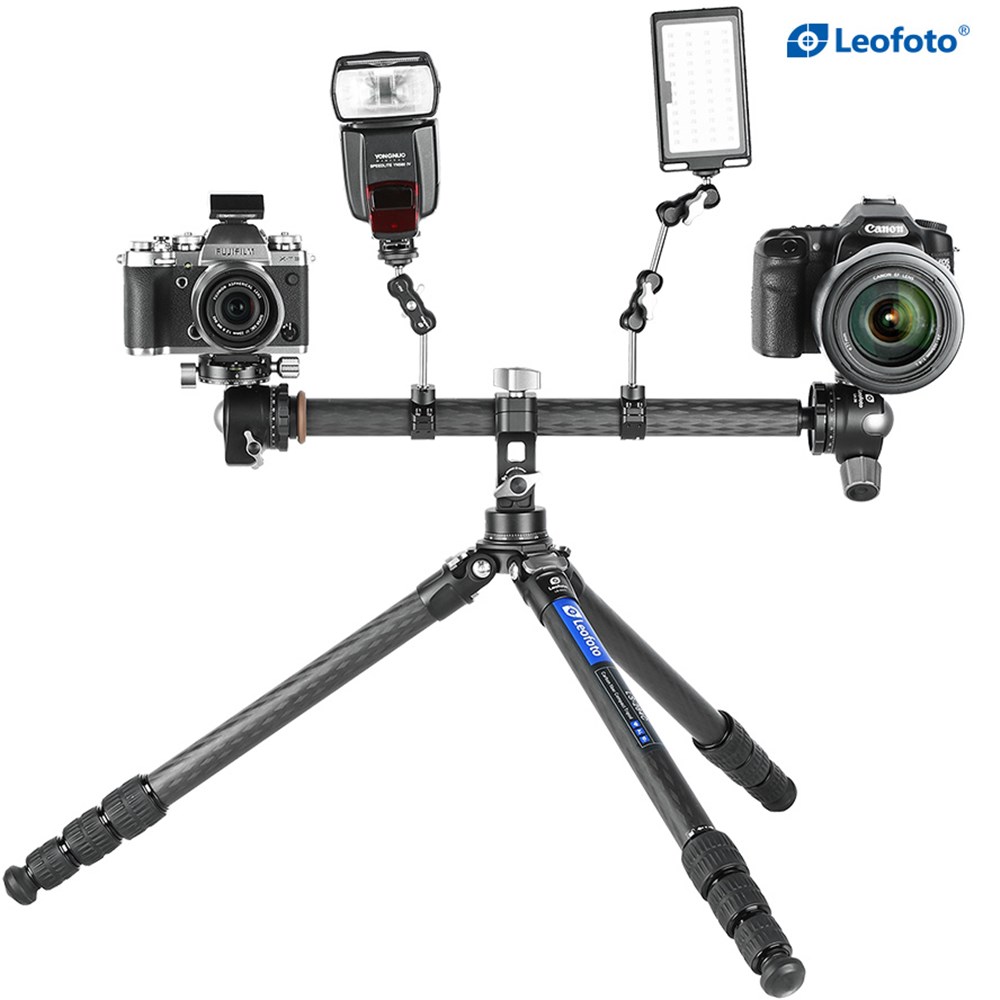 The HC-28 Horizontal Panoramic Carbon Fiber Center Column System from Leofoto is a 15.75"" carbon fiber extension set that allows an adjustable center column to be added to a tripod without a center column. The rugged but lightweight carbon-fiber column can be rotated a full 360° and tilted 180° from horizontal to fully vertical in either a standard or inverted orientation. One end of the column features a mounting platform with a reversible 1/4"-20 to 3/8"-16 mounting stud and three set screws to securely mount virtually any tripod head and prevent it from rotating. The other end of the column is a weight hook that can be fully rotated so that it can always be facing up to receive a sandbag, equipment bag strap, or other type of ballast.