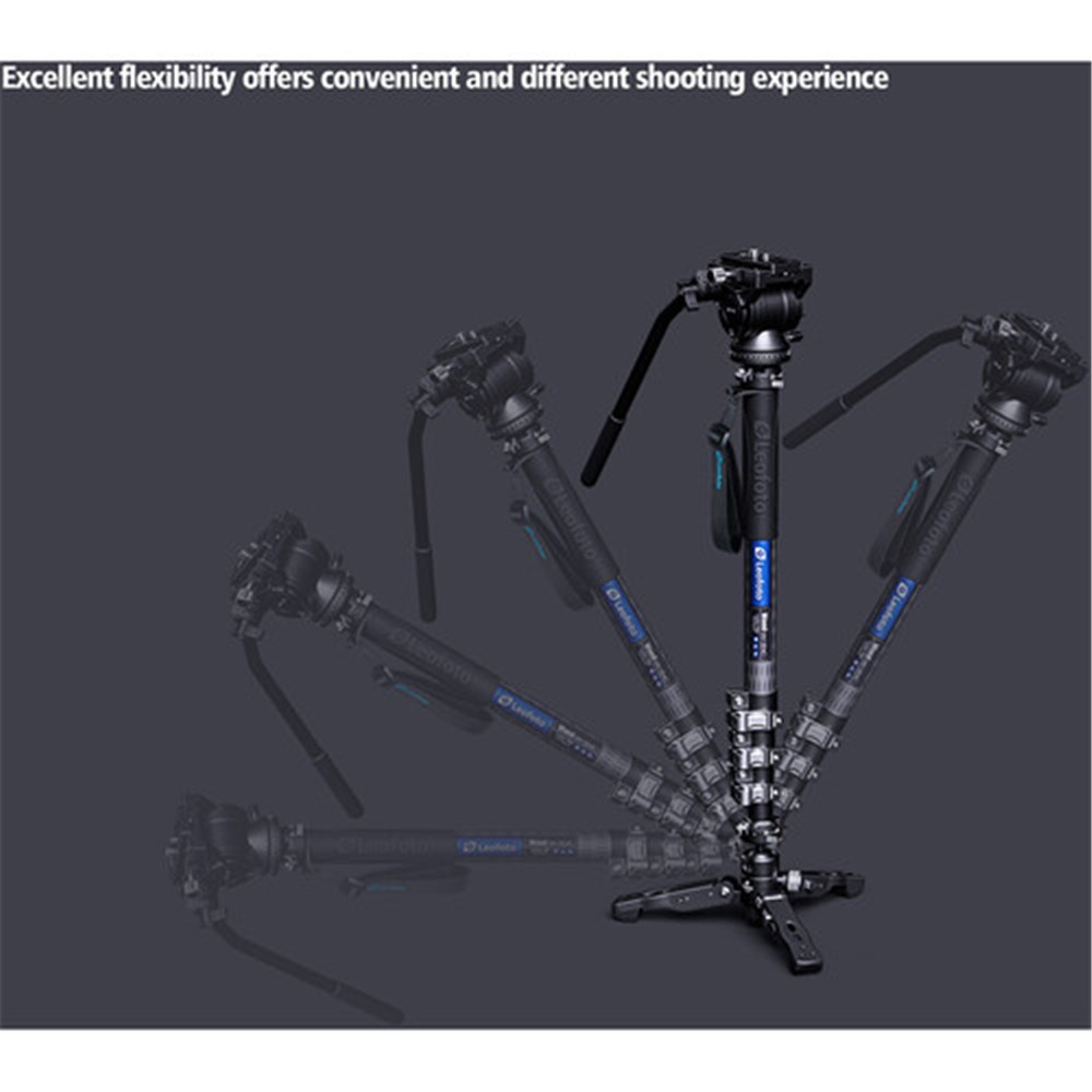 The MV-324CL Carbon Fiber Monopod with BV-10 Fluid Video Head from Leofoto offers a convenient and versatile monopod shooting experience for both video and still applications. Boasting a maximum height of 74.8" and load capacity of 11 pounds, this lightweight 4-section carbon fiber monopod is topped with a BV-10 fluid video head that has an integrated Arca-type quick release set. The head has an adjustable pan handle that can used in left- or right-handed configuration, plus two bubble levels for optimal positioning. The top of the monopod features a press-style quick release system for a fast, easy, and secure setup. The top plate of the quick release set can also be attached to the folding monopod base support to create a versatile mini tripod.