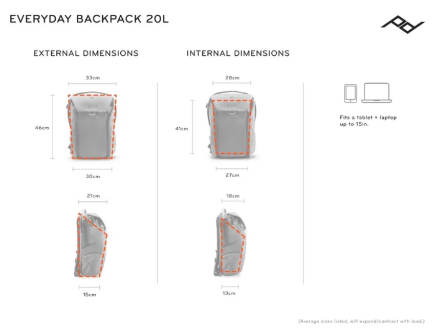 Inside, 3 configurable FlexFold dividers keep gear organized, protected, and not bunched at the bottom of your bag. Dedicated sleeves for up to 15” laptop (or 16" MacBook Pro), tablet, or documents, plus a variety of internal slip pockets for small items. 100% recycled 400D weatherproof shell keeps everything safe.